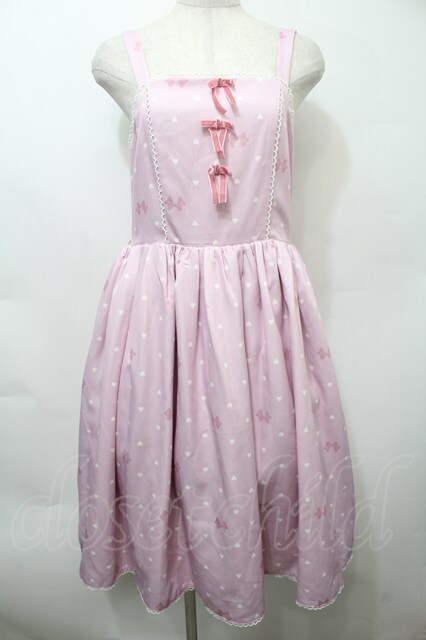 axes femme kawaii / ハートドット柄ジャンスカ ピンク S-25-10-12-032-AX-OP-HR-ZS