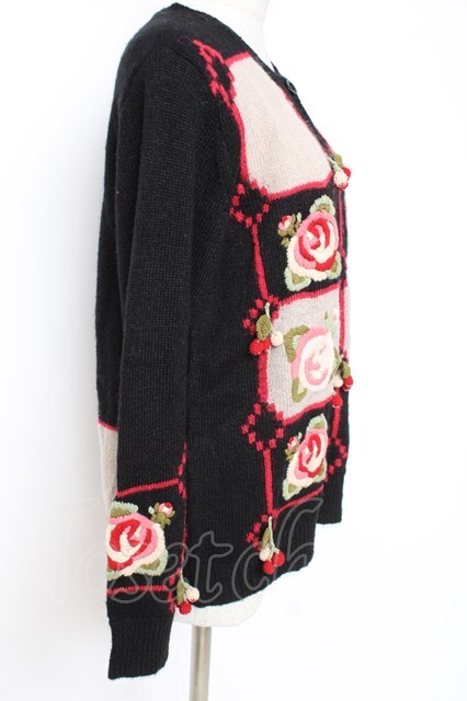 PINK HOUSE / ローズモチーフパッチワーク風カーディガン F 黒 Y-25-12-20-052-LO-TO-SZ-ZS
