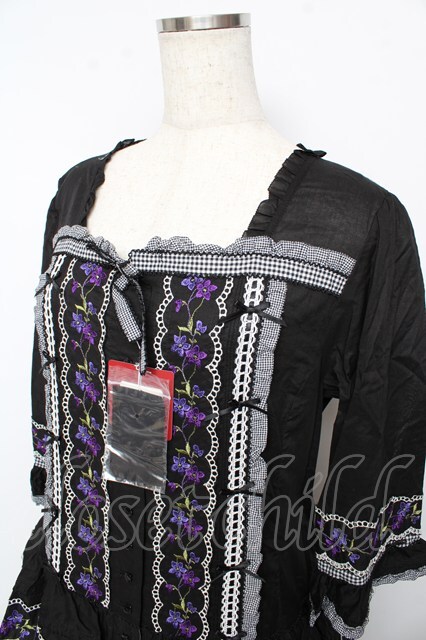 PINK HOUSE / バイオレットレース使いワンピース F 黒 Y-25-10-15-028-LO-OP-SZ-ZY