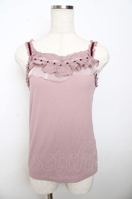 axes femme / チュール×レース重ねキャミ M 淡ピンク Y-25-10-16-045-AX-TO-SZ-ZT203