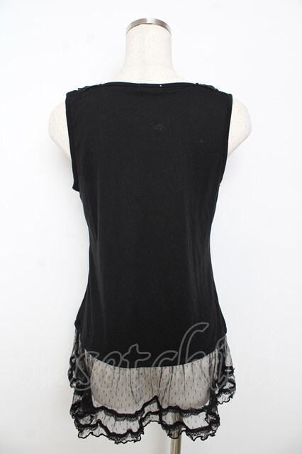 axes femme / 裾ドットチュールタンク M 黒 Y-25-10-16-068-AX-TO-SZ-ZT153