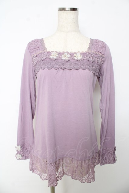 axes femme / お花モチーフ付きカットソー ラベンダー Y-25-10-16-075-AX-TO-SZ-ZY