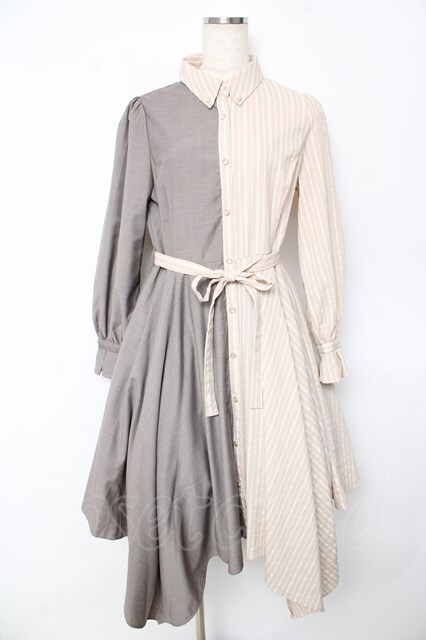 axes femme / バイカラー長袖ワンピ M ベージュ Y-25-10-16-128-AX-OP-SZ-ZY