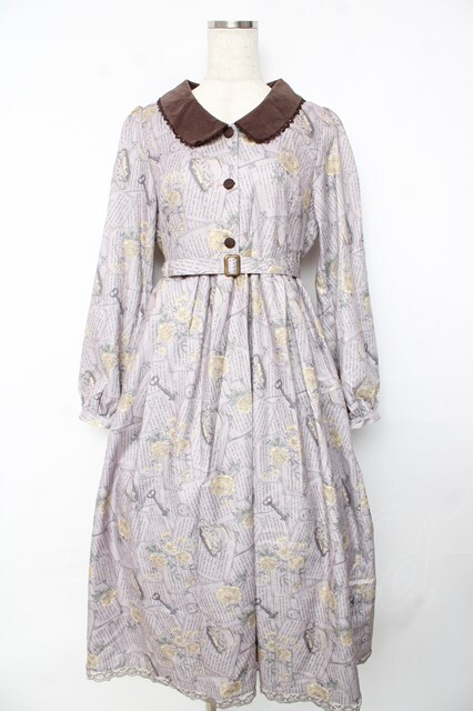 axes femme / アンティーク柄ワンピース M モーヴ Y-25-10-16-129-AX-OP-SZ-ZI
