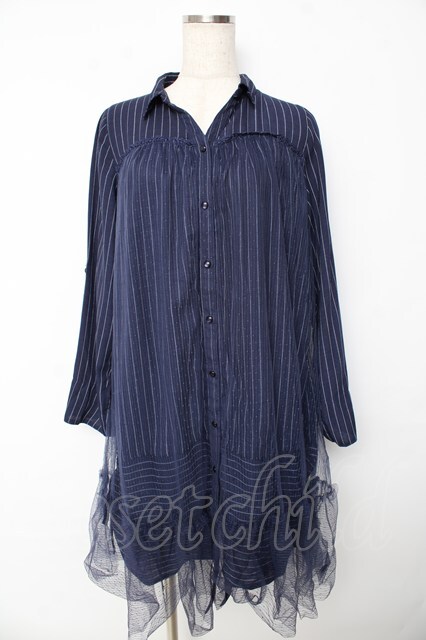 axes femme / チュール重ねチュニック M 紺 Y-25-10-16-130-AX-OP-SZ-ZY