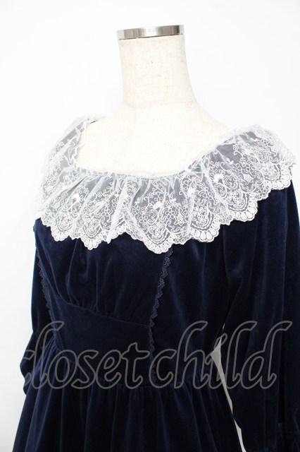 axes femme / パゴタ袖ベロアワンピース F 紺 Y-25-10-16-131-AX-OP-SZ-ZY