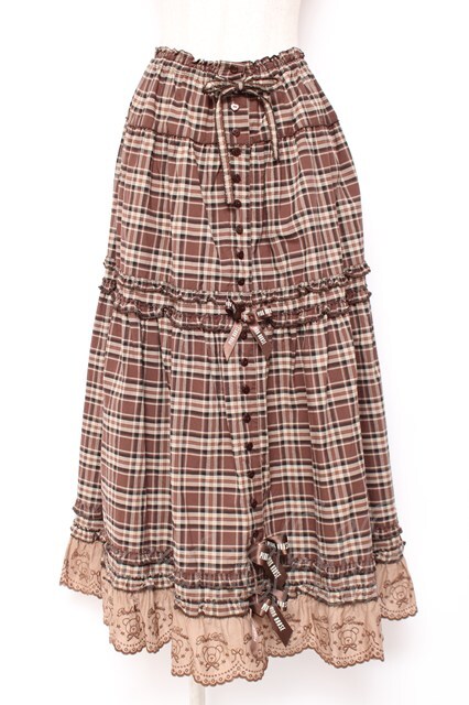 PINK HOUSE / オリジナルクマレースチェックスカート F ブラウン Y-25-12-20-100-LO-SK-SZ-ZY