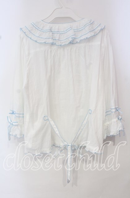 PINK HOUSE / ローンフリルブラウス シロ×ミズイロ O-25-10-14-121-LO-BL-OW-OS [戻る]
