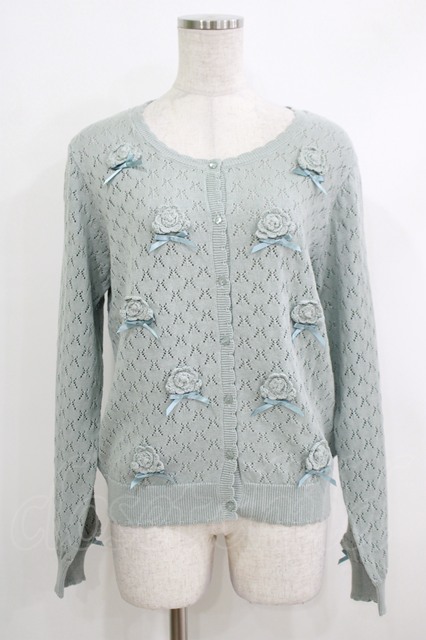 PINK HOUSE / モチーフ付き透かし編みカーディガン ミント H-25-10-19-1043-LO-TO-NS-ZH [戻る]