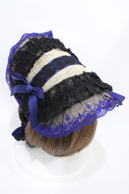 Moi-meme-Moitie / タイニーローズレースリネンヘッドドレス 黒×青 H-25-10-20-1004-MO-AC-KB-ZH