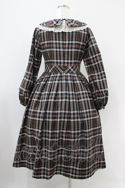 Melody BasKet / リボンとレースカラーのタータンチェックワンピース ブラウン H-25-10-20-1033-LO-OP-KB-ZH