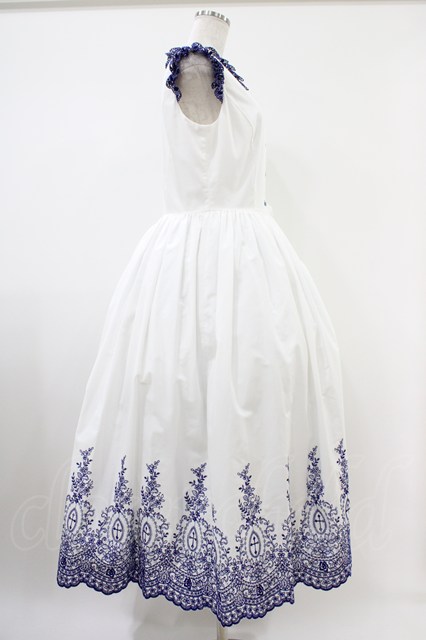 Moi-meme-Moitie / Rose Garden刺繍サンドレス 13号 白×青 H-25-10-20-1041-MO-OP-KB-ZH