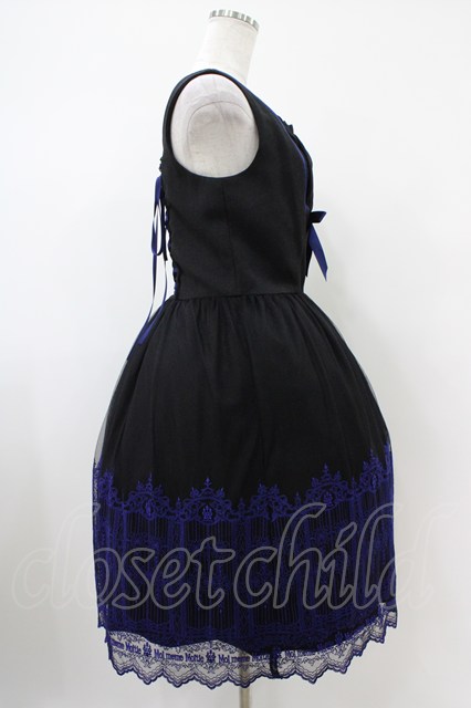 Moi-meme-Moitie / 燭台エンブレムゲートジャンパースカート 黒×青 H-25-10-20-1039-MO-OP-KB-ZH