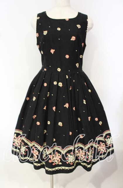 Emily Temple cute / ローズプリントジャンパースカート クロ O-25-10-16-020-ET-OP-IG-OS
