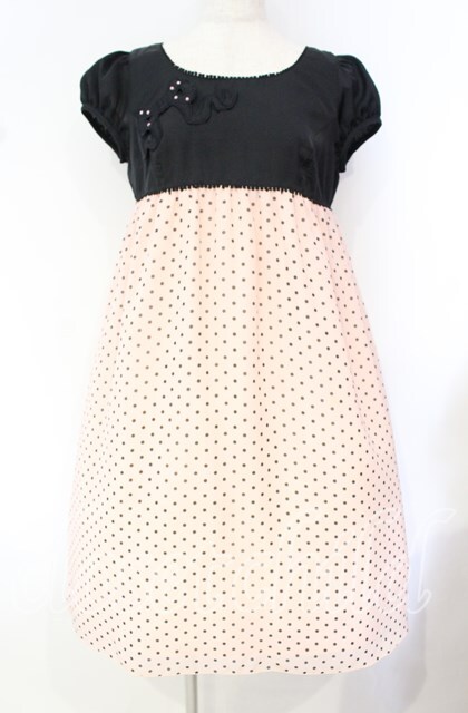 Emily Temple cute / リボンアップリケ付きジャンパースカート クロ×ピンク O-25-10-16-034-ET-OP-IG-OS [戻る]