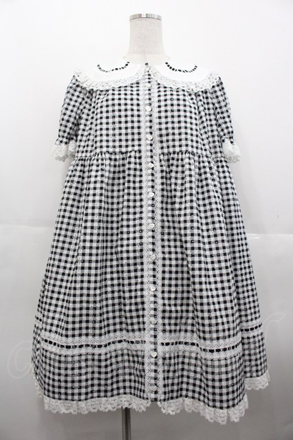 RUSANJN ROOM / ギンガムチェック半袖ワンピース 黒X白チェック I-25-10-15-042-LO-OP-SA-ZI [戻る]