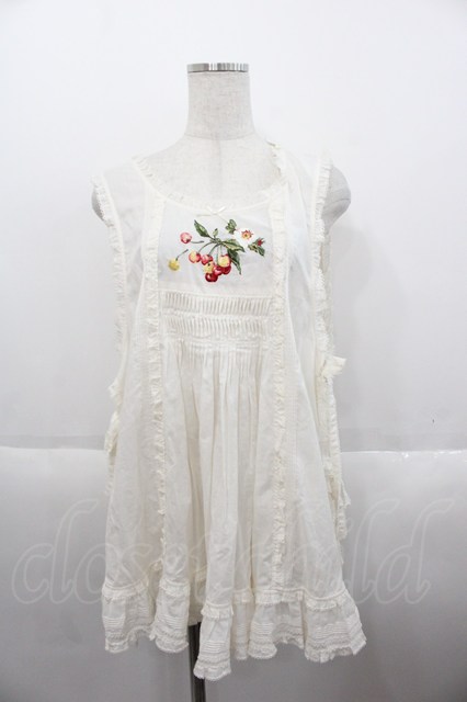 PINK HOUSE / 野ばらとチェリー刺繍タブリエ 白 I-25-10-15-078-LO-OP-SA-ZS [戻る]