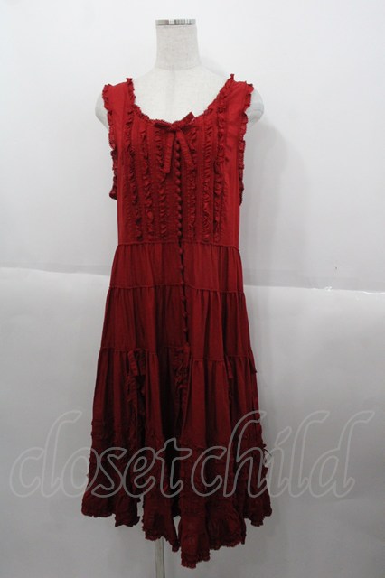 PINK HOUSE / 花びらフリル使いローンタブリエドレス 赤 I-25-10-15-079-LO-OP-SA-ZI