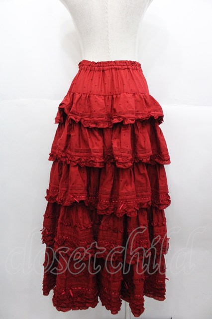 PINK HOUSE / 水玉プリントフリルスカート 赤 I-25-10-15-089-LO-SK-SA-ZI