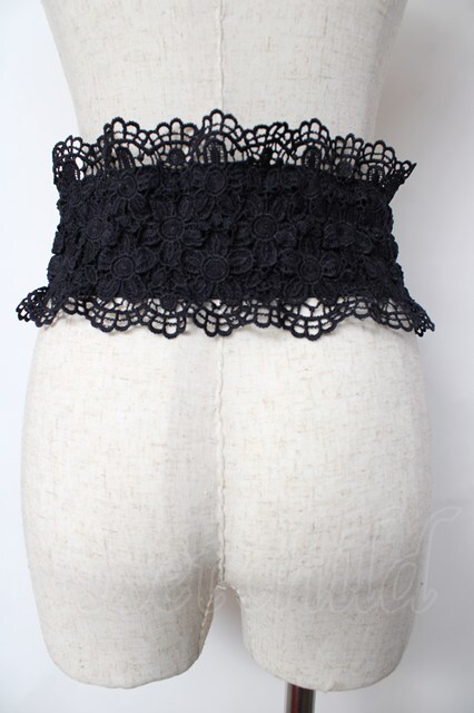 axes femme POETIQUE / 編み上げ×レース太ゴムベルト 黒 Y-25-10-18-030-AX-ZA-SZ-ZY