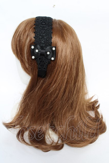 m petit by misako / リボンパールレースカチューシャ 中黒 Y-25-10-18-053-LO-AC-SZ-ZY [戻る]