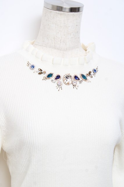 axes femme / ビジューニットプルオーバー M 白 Y-25-10-18-071-AX-TO-SZ-ZI