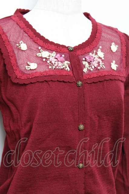 axes femme / リボン刺繍カーディガン M ワイン Y-25-10-18-096-AX-TO-SZ-ZY [戻る]