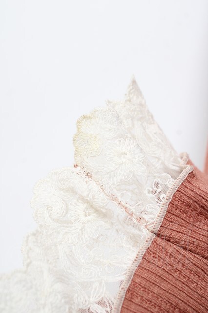 axes femme / バイカラーメロー袖レースプルオーバー F オレンジ Y-25-10-18-100-AX-TO-SZ-ZY