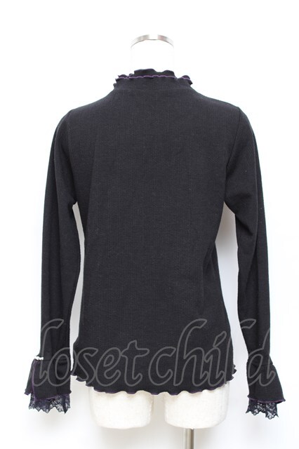 axes femme / 袖レース配色メローフリルプルオーバー F 黒 Y-25-10-18-110-AX-TO-SZ-ZY