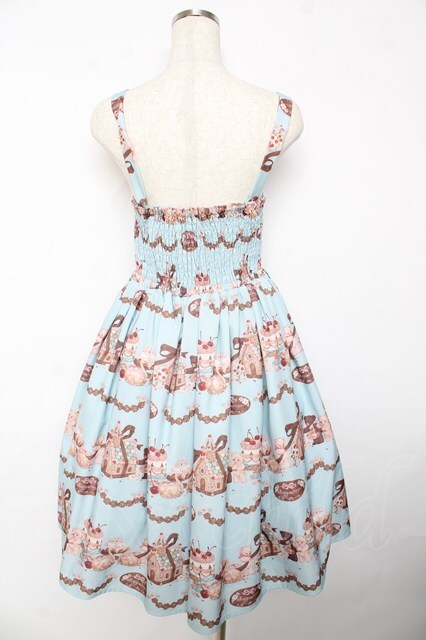 axes femme kawaii / お菓子の家柄ジャンスカ M サックス Y-25-10-18-167-AX-OP-SZ-ZY