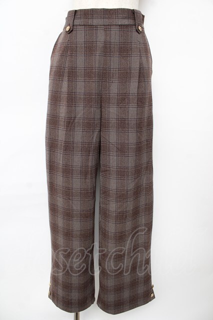 axes femme / 裾釦起毛チェックワイドパンツ L 茶 Y-25-10-18-209-AX-PA-SZ-ZY [戻る]