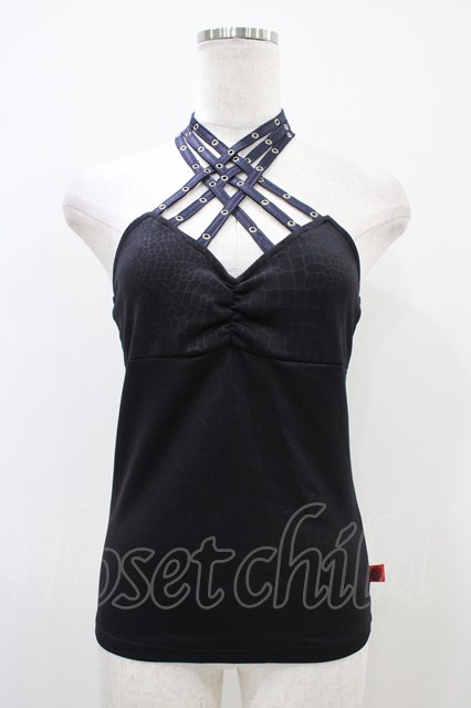 Qutie Frash / クロスキャミ パイソンプリント黒×紺 H-25-10-22-032-QU-TO-KB-ZH