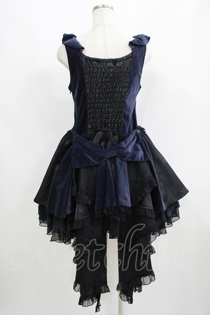 FRILL / 鳥かご刺繍フリルジャンパースカート ネイビー×ブラック H-25-10-20-017-HN-OP-KB-ZH