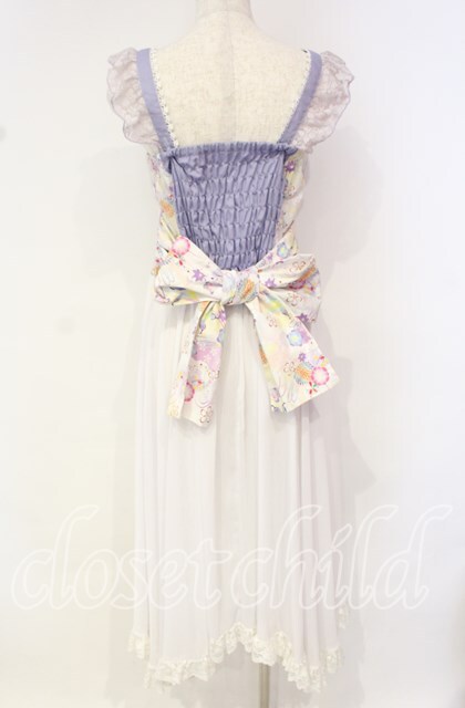 gouk / 和柄切り替えオーバーワンピース ラベンダー×ホワイト O-25-10-18-042-GO-OP-IG-OS
