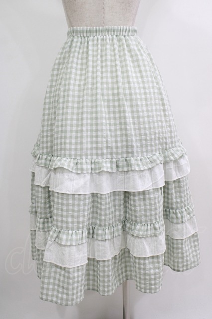 merry jenny / ギンガムレースフレアスカート グリーン H-25-10-22-1003-LO-SK-KB-ZH