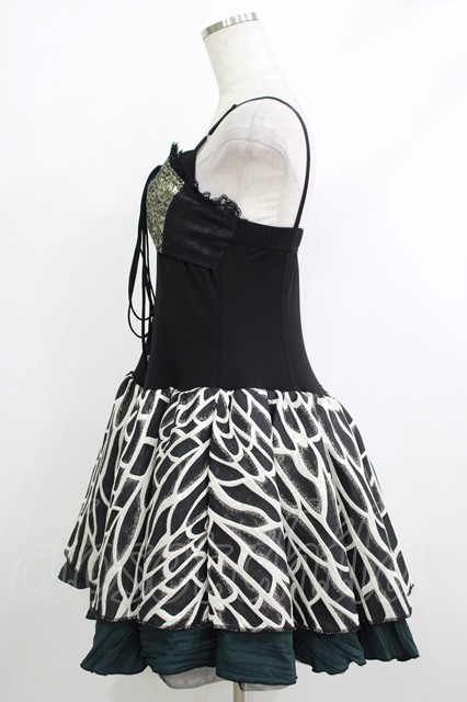 Qutie Frash / キャミワンピース 黒×緑 H-25-10-22-1032-QU-OP-KB-ZH