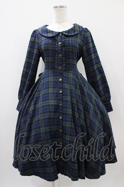 Favorite / チェックワンピース M ネイビー H-25-10-24-1035-LO-OP-NS-ZH
