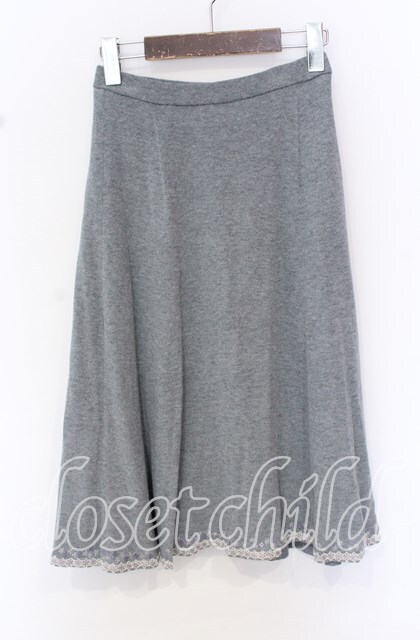 TOMATSU / スパンコールフラワーニットスカート 38 グレー O-25-10-19-050-LO-SK-IG-OS