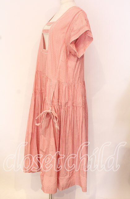 WONDERFUL WORLD / ストライプ胸開きワンピース アカ O-25-10-19-082-LO-OP-IG-OS