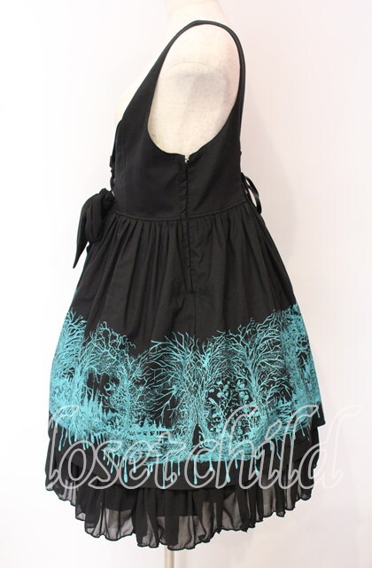 ALGONQUINS / 長い長い森レースアップフロントツートンピナフォアドレス ブラック×グリーン O-25-10-19-108-AL-OP-IG-OS