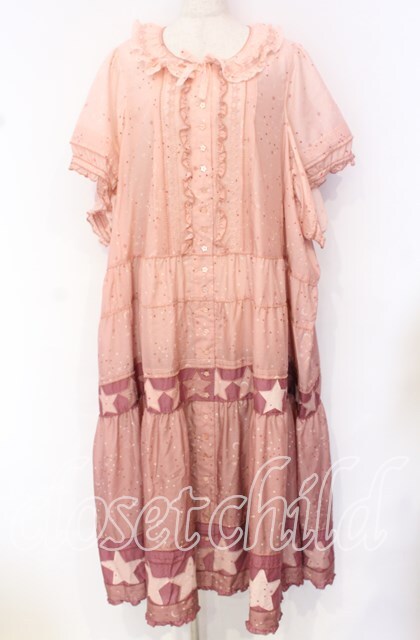 PINK HOUSE / Starry Sky プリントパッチワークワンピース【お直しあり】 生地付け足し(通常よりも大きなサイズ) ピンク O-25-10-19-085-LO-OP-IG-OS