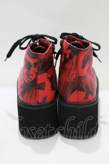 YOSUKE / 厚底レースアップブーツ S レッド H-25-10-23-1069-PU-SH-KB-ZH