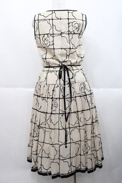 INGEBORG / カメリア風枠柄ノースリーブワンピース アイボリーX黒 I-25-10-18-060-LO-OP-SA-ZI