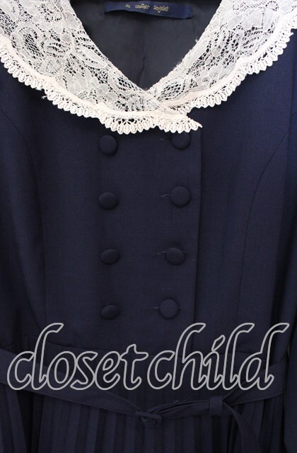 an another angelus / レース襟プリーツワンピース F ネイビー O-25-10-20-047-CA-OP-OW-OS
