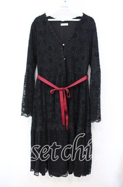 axes femme / 花柄総レースガウンワンピース M クロ O-25-10-20-043-AX-OP-OW-OS