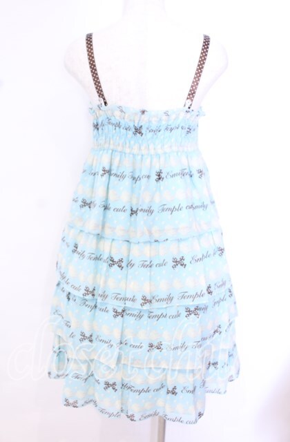Emily Temple cute / ジョーゼットロゴ&クリームノースリーブワンピース サックス O-25-10-20-072-ET-OP-IG-OS