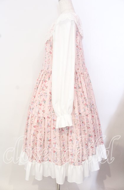 marcHenTica by Hiroko Tokumine / フレアローズワンピース ピンク O-25-10-20-006-LO-OP-OW-OS