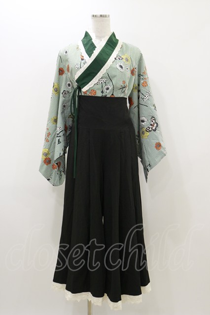 Favorite / 和洋折衷着物風翡翠の蝶々ワンピース 羽織M~LL/袴S グリーン/ブラック H-25-10-25-049-LO-OP-NS-ZH [戻る]