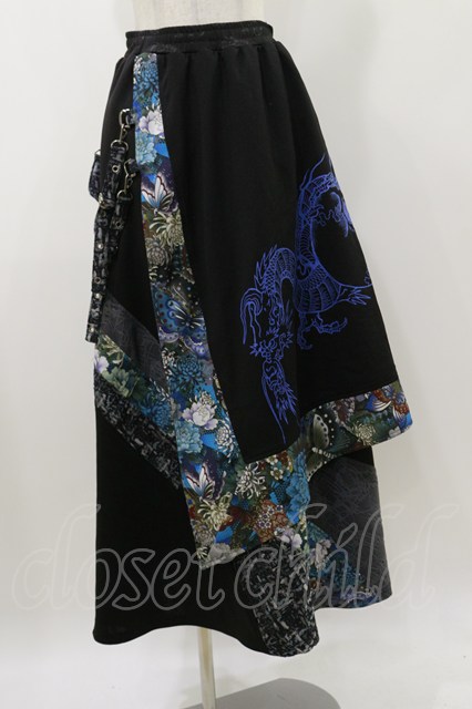 Qutie Frash / ハカマ風ロングスカート 黒×青 H-25-10-26-030-QU-SK-KB-ZH