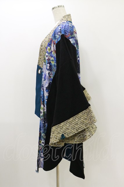 Qutie Frash / 和柄ロングカーデ 黒×緑 H-25-10-26-010-QU-TO-KB-ZH
